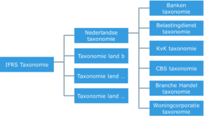Richard vervolgt: ‘’Binnen een nationale taxonomie kunnen verschillende sectoren weer hun eigen extensies toevoegen om het berichtenverkeer nog meer op maat te maken. Zo is er een bankentaxonomie en een taxonomie voor de belastingdienst. Een extensie leunt altijd op de basistaxonomie: de bankentaxonomie leunt op de Nederlandse taxonomie en die leunt op haar beurt weer op IFRS. Een taxonomie maakt dus altijd gebruik van de bovenliggende taxonomie. Alleen heel specifieke begrippen die niet in de bovenliggende taxonomie zijn gedefinieerd, worden vastgelegd in een extensie.’’